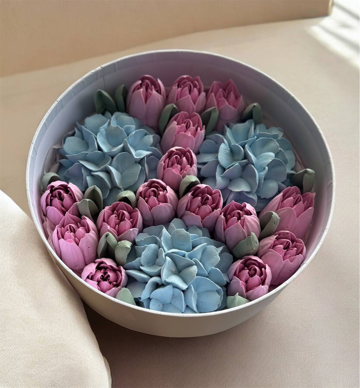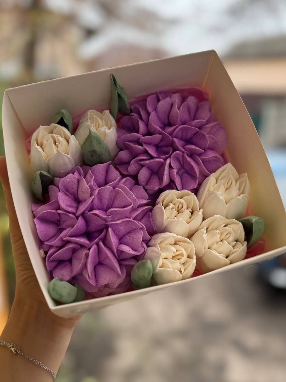 Ніжна коробочка з зефірними квітами ручної роботи. Компактний і дуже милий подарунок