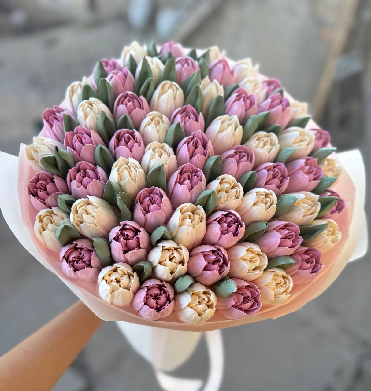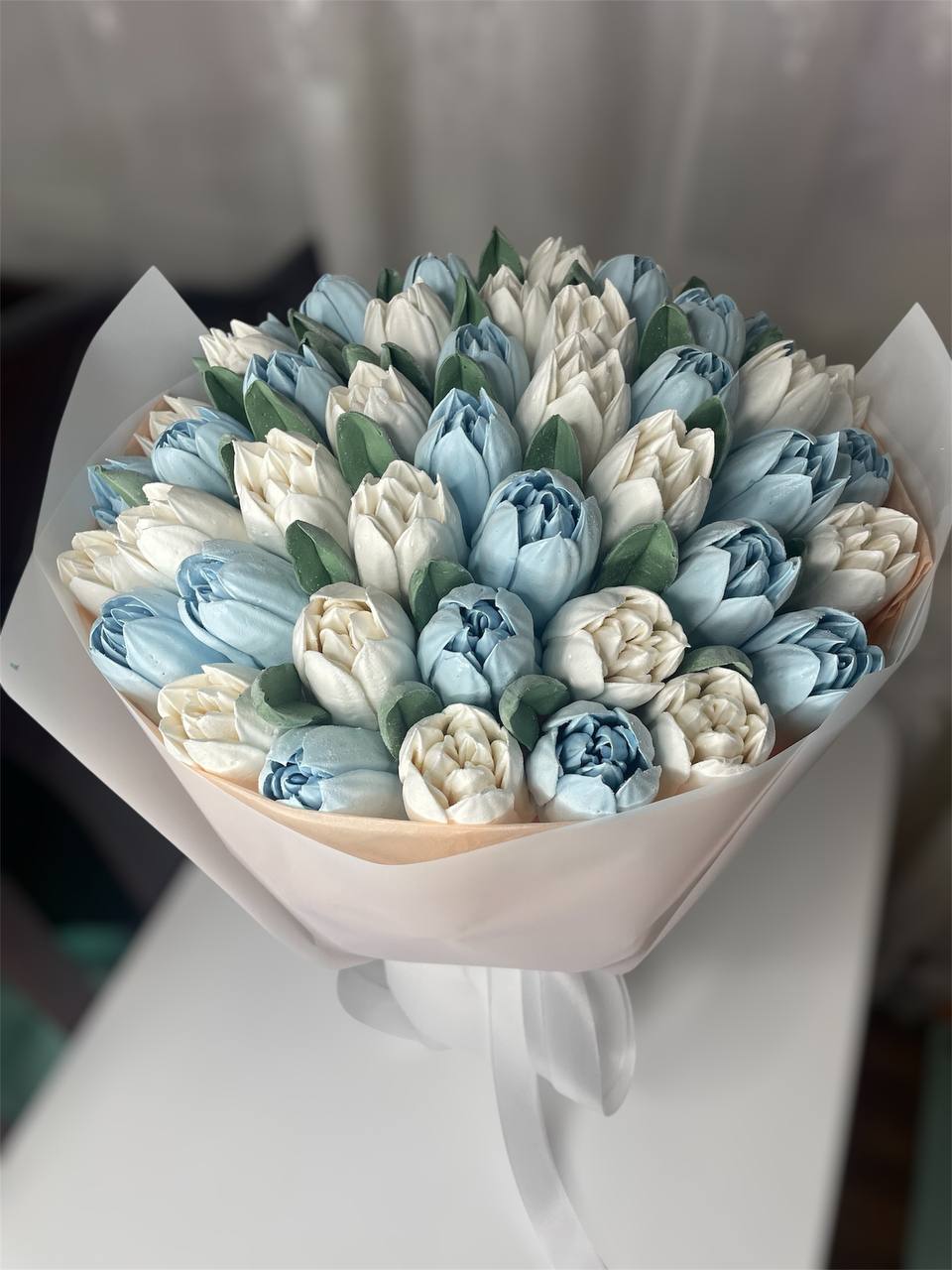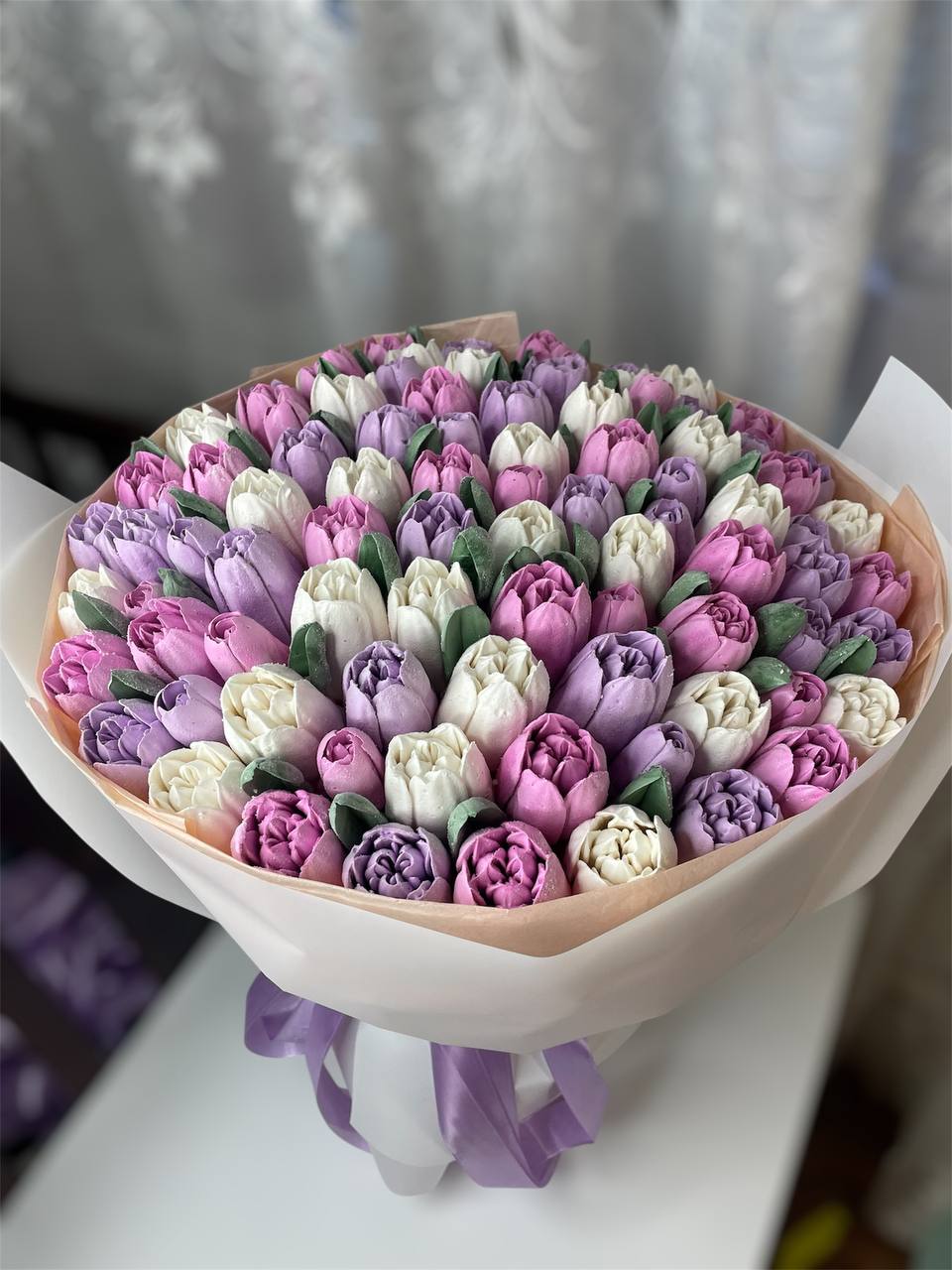 Насичений букет зефірних тюльпанів у різних відтінках. Легкий, стильний та дуже фотогенічний