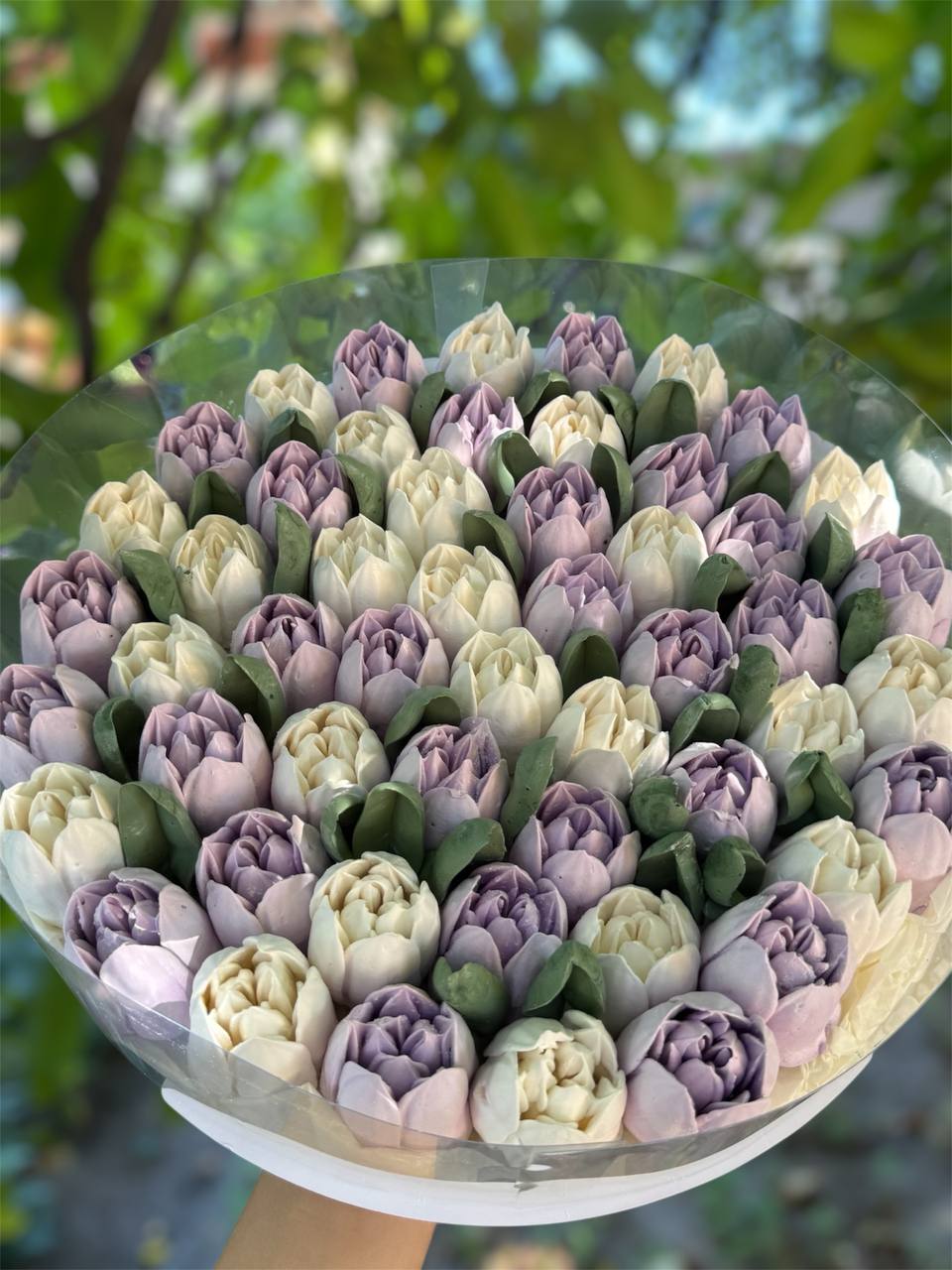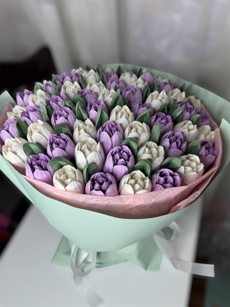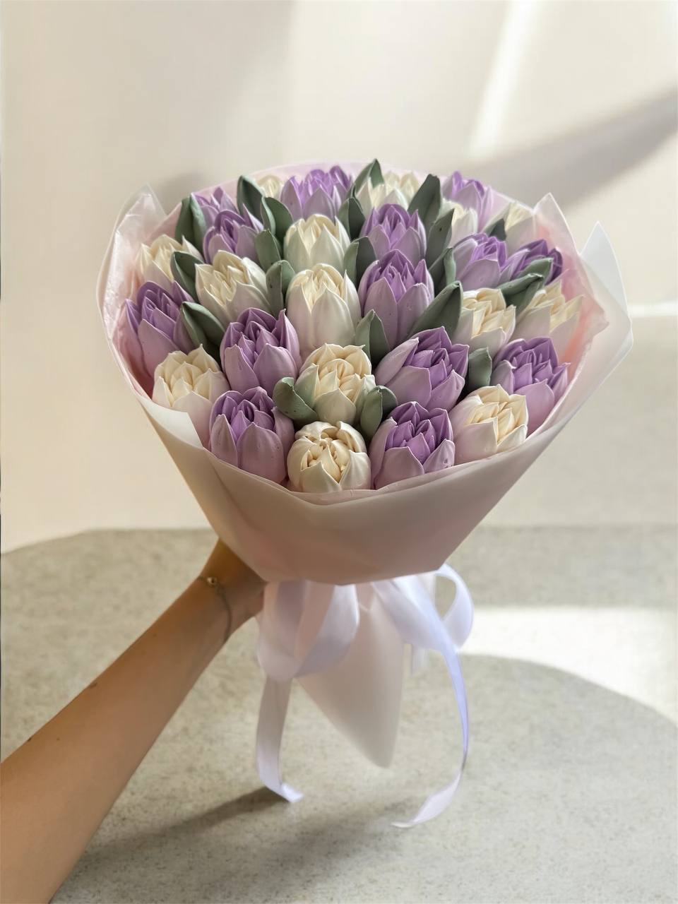Насичений букет зефірних тюльпанів у різних відтінках. Легкий, стильний та дуже фотогенічний
