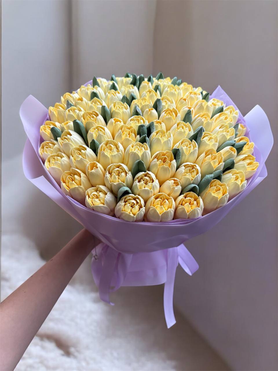 Сонячний букет із жовтих зефірних тюльпанів. Наповнює простір теплом і позитивом.